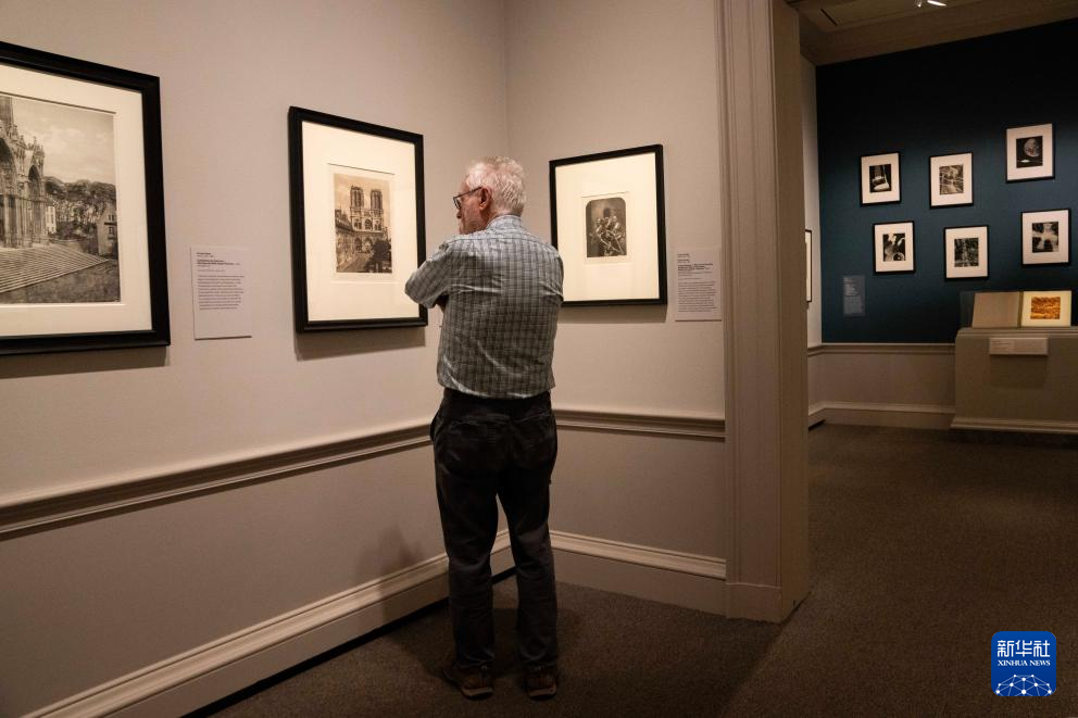 11月22日,一名参观者在美国华盛顿的国家画廊观看凹版照相作品。
