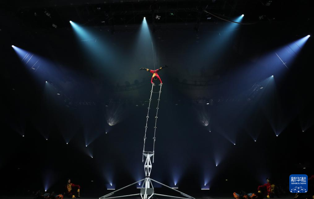 12月8日,演员在法国巴黎举行的中国杂技“奇妙之夜”演出上表演《草帽》。