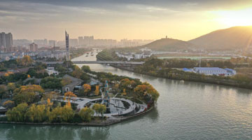 12月14日,工人在哈尔滨冰雪大世界园区建设现场施工(无人机照片)。