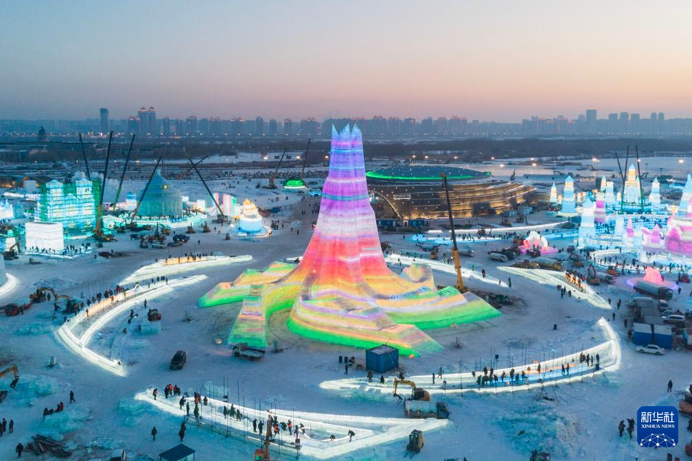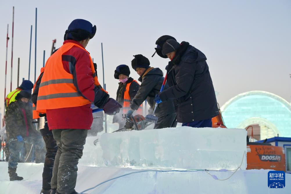 以“龙腾冰雪 逐梦亚冬”为主题的第二十五届哈尔滨冰雪大世界将于12月18日开园迎客。目前在园区内,林立的塔吊、穿梭的机械交织成一首忙碌的建设“交响曲”。本届哈尔滨冰雪大世界将使用25万立方米的冰和雪,倾力打造一个梦幻精彩的冰雪童话世界。