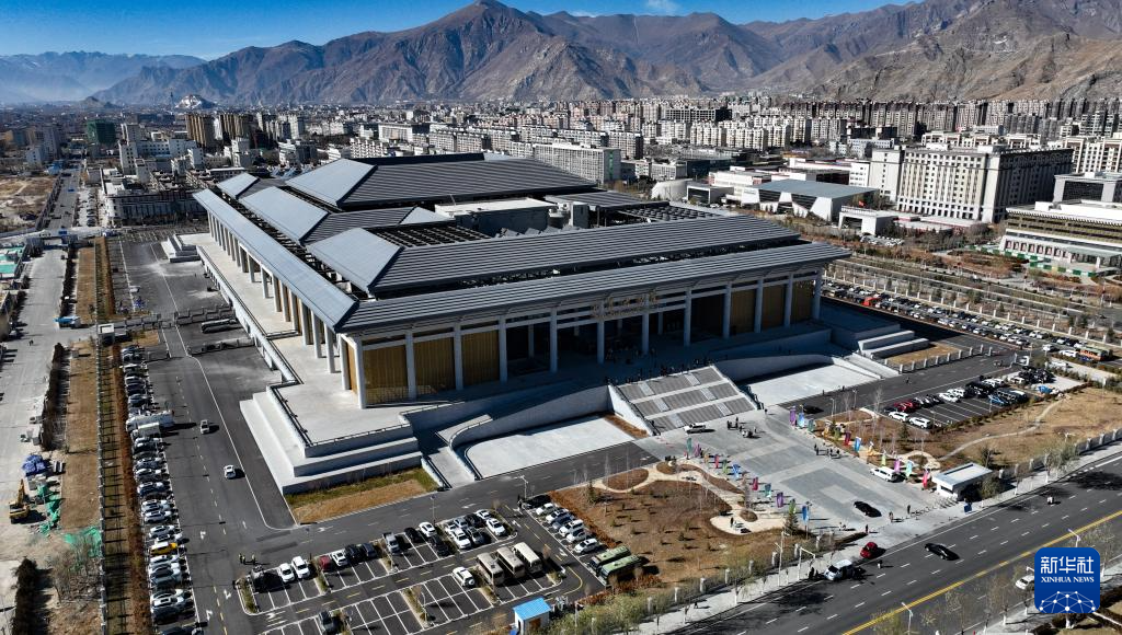 空中俯瞰西藏大剧院(12月15日摄,无人机照片)。