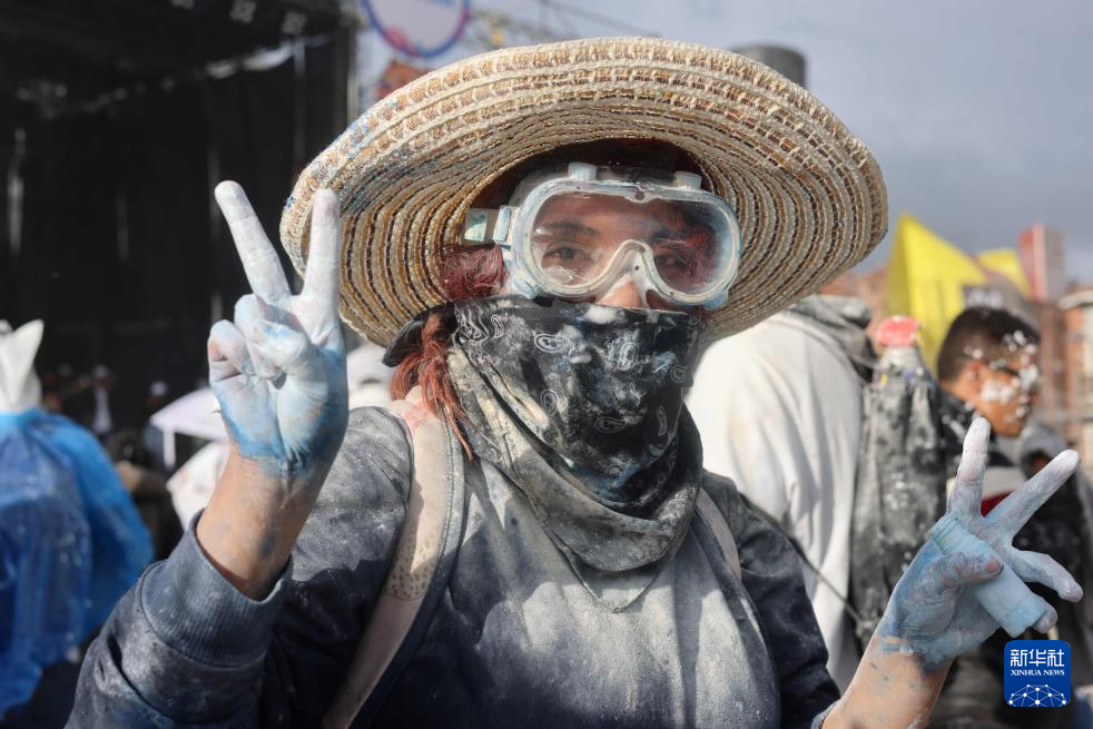 1月3日,一名女士在哥伦比亚帕斯托参加“黑与白”狂欢节活动。