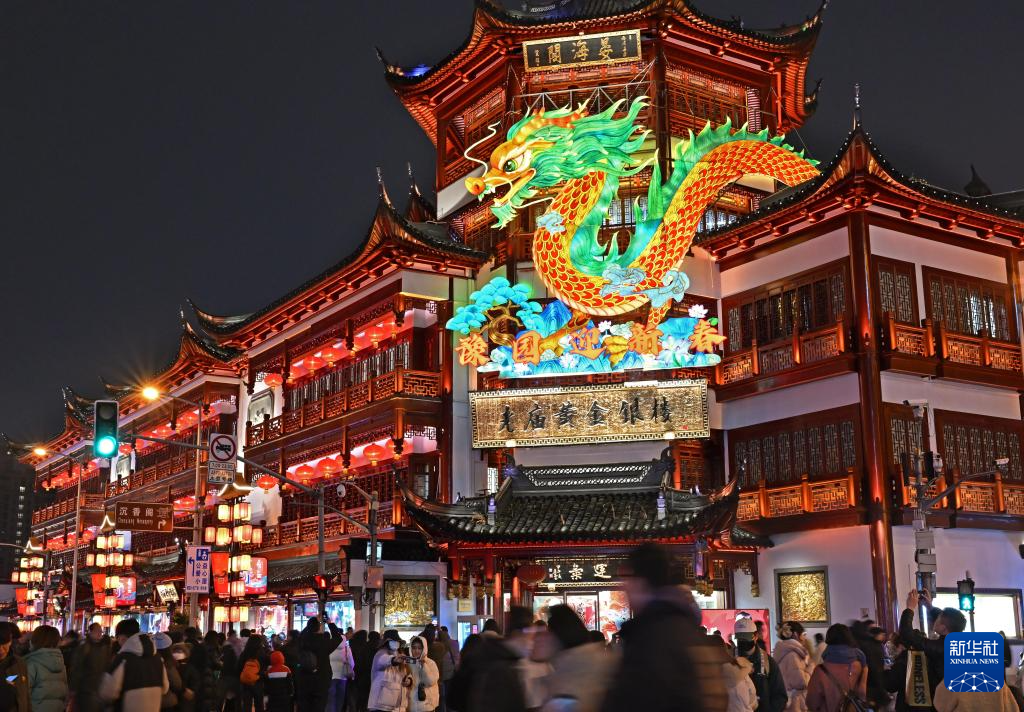当日,2024上海豫园民俗艺术灯会正式亮灯。今年豫园灯会续写“山海奇豫记”,以“海经篇”为主题,生肖龙灯、海底世界、鱼群起舞、奇幻仙境等场景让游客在灯火绚烂的国风幻境中喜迎龙年新春。