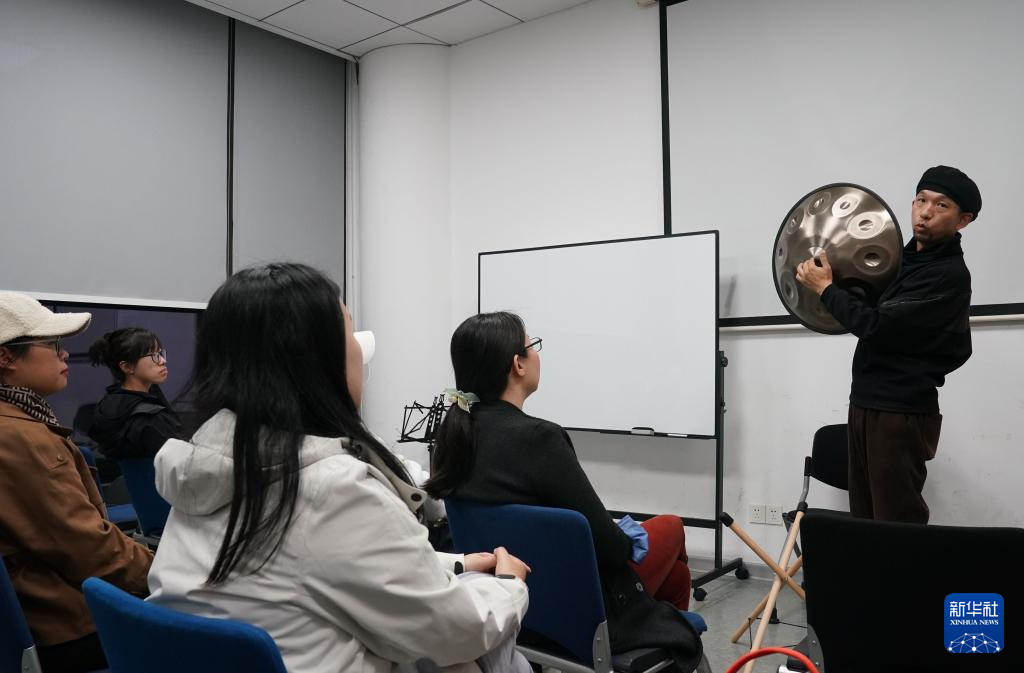 4月8日晚,在上海市群众艺术馆,手碟课程的老师在给学员们上课。