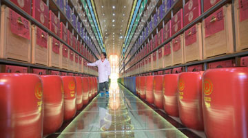 4月17日,在衢州江山市张村乡龙头店村,“杜立特行动”3号机领航员查尔斯·奥祖克的女儿苏珊·奥祖克(左)接过村民廖明发端来的一碗鸡蛋面。1942年,村民廖诗原(廖明发的父亲)一家曾悉心照顾跳伞降落的查尔斯·奥祖克。