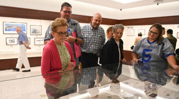 在衢州江山市档案馆,获救美国军人后代参观“杜立特行动”江山大救援专题展览(4月16日摄)。