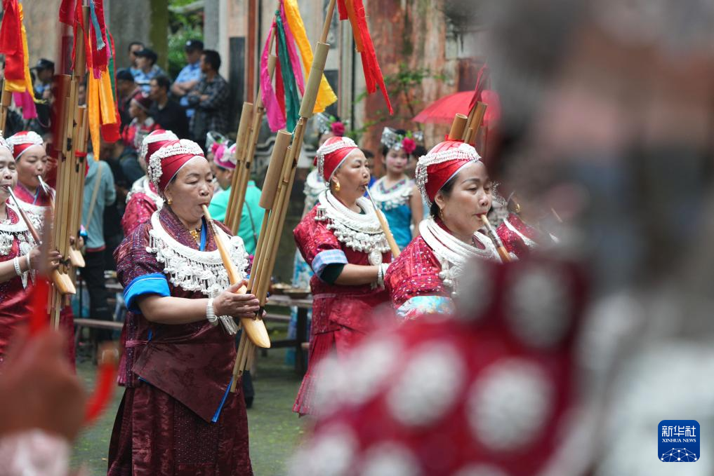 5月15日,少数民族群众在贵州省黔南布依族苗族自治州都匀市表演芦笙舞。