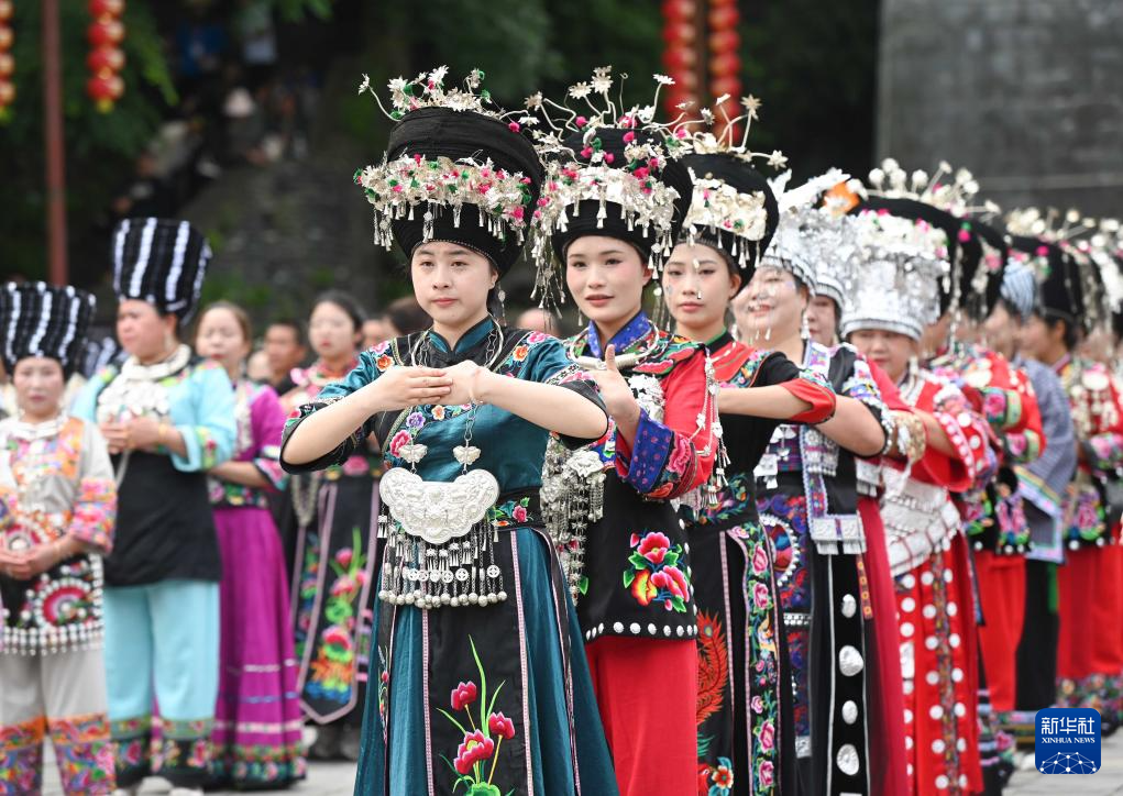 当日是农历四月初八,贵州省多地少数民族群众身着盛装,举行丰富多彩的活动欢庆传统节日“四月八”。