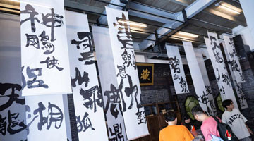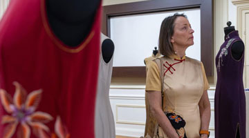 5月14日,时敬华(右)为伙伴整理乱弹服饰。