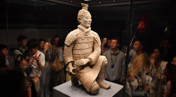 陈永霞习惯性地用两指测试面具下沿与双眼间留出的宽度,以便观察舞台环境(5月16日摄)。