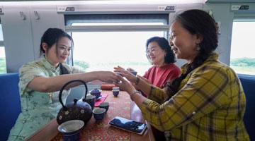 5月16日,陈永霞(右)在更换阳戏戏服。