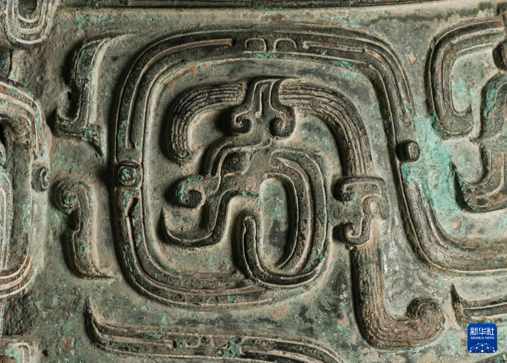 秦公镈(一号镈)“扉棱”上的龙纹特写(2024年1月23日摄)。