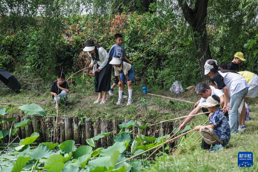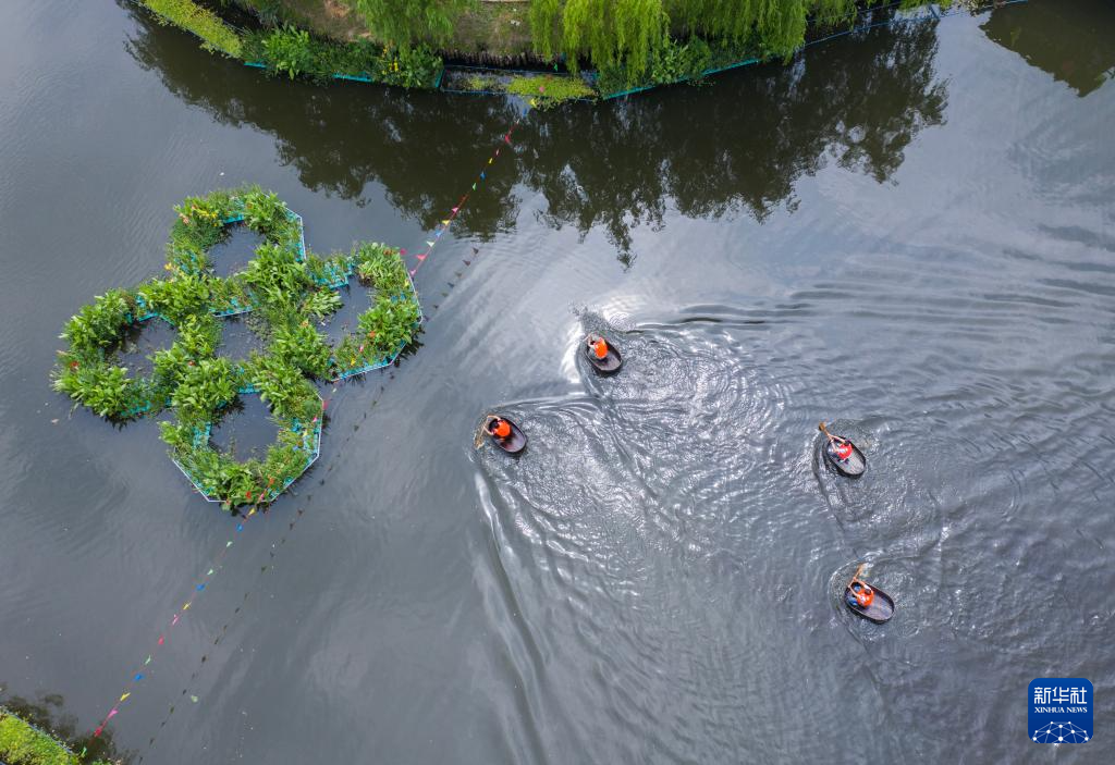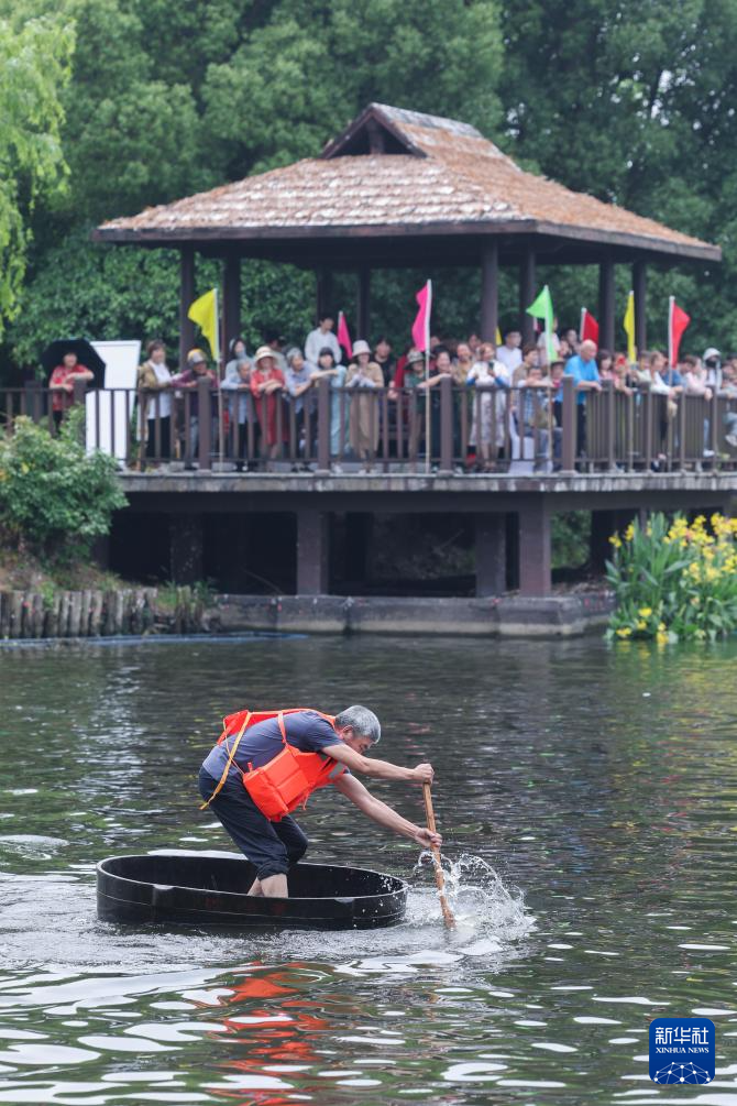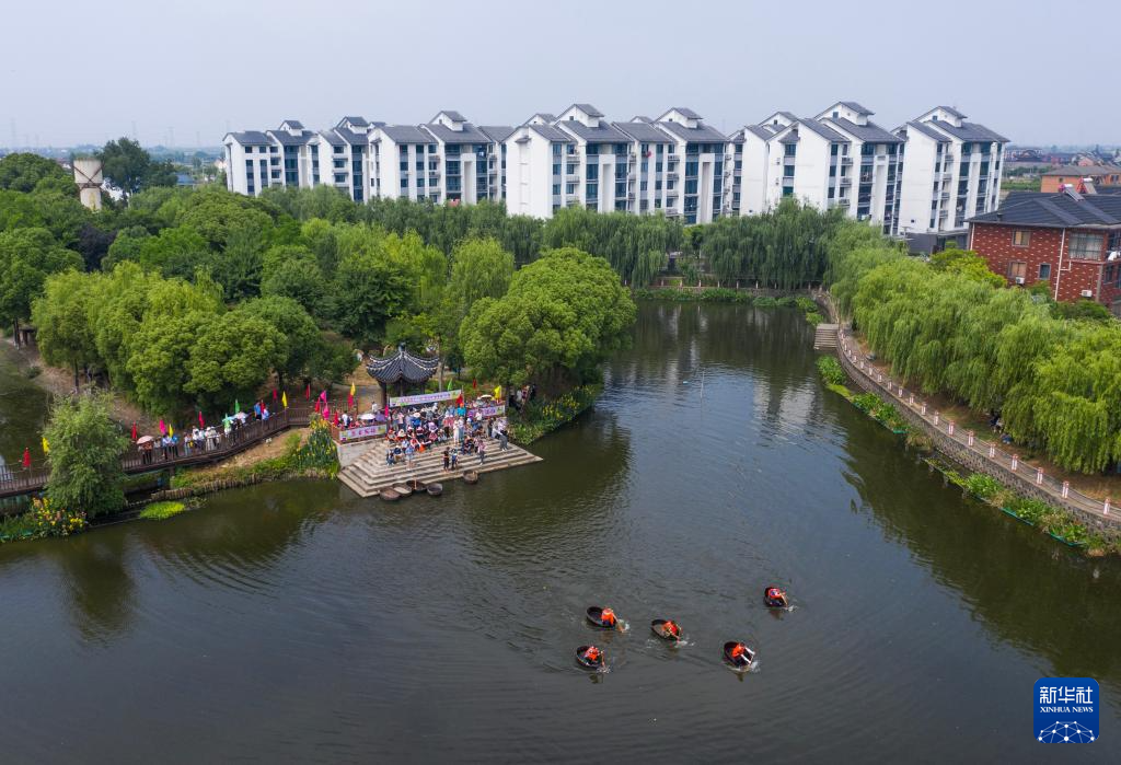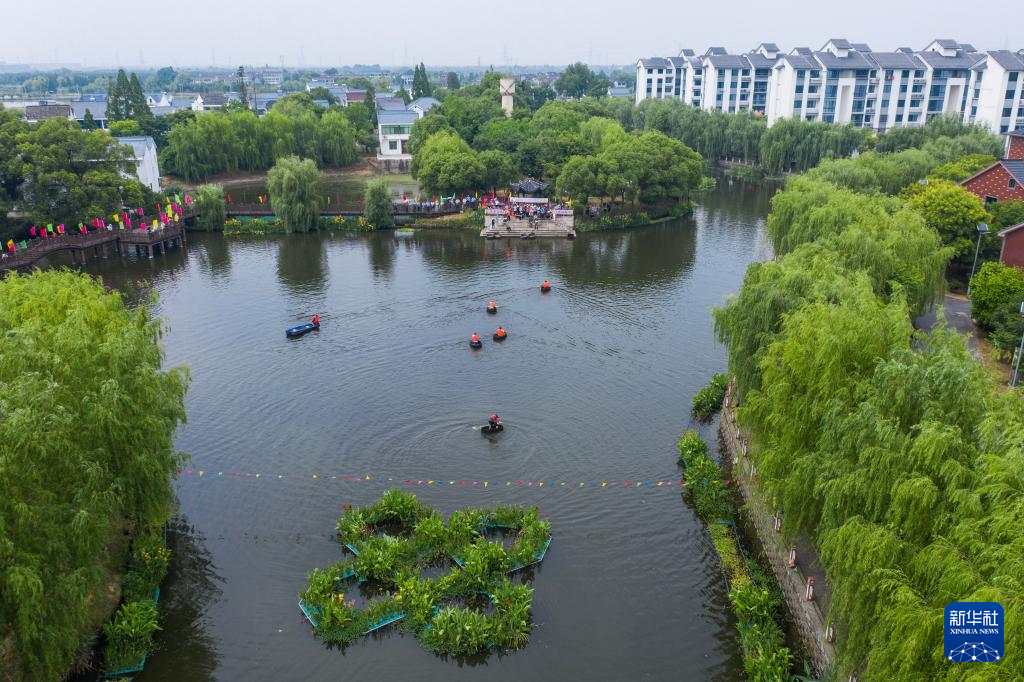 当日,浙江省湖州市吴兴区东林镇举办“庆端午 划菱桶”水乡端午趣味民俗活动,来自东林镇各村的村民们在泉益村参加了水乡划菱桶比赛、荷塘钓小龙虾、做艾草花束、包粽子等端午趣味民俗活动,在初夏时节呈现江南水乡特有的迎端午气氛。