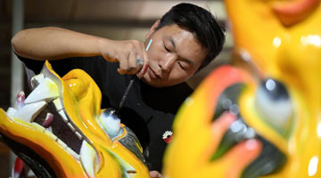 朱江设计的实用性雕漆工艺品(6月5日摄)。