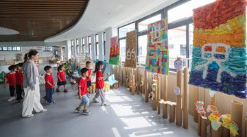 孩子们在“温暖嘉·色尼城市书房”内阅读儿童绘本(6月17日摄)。