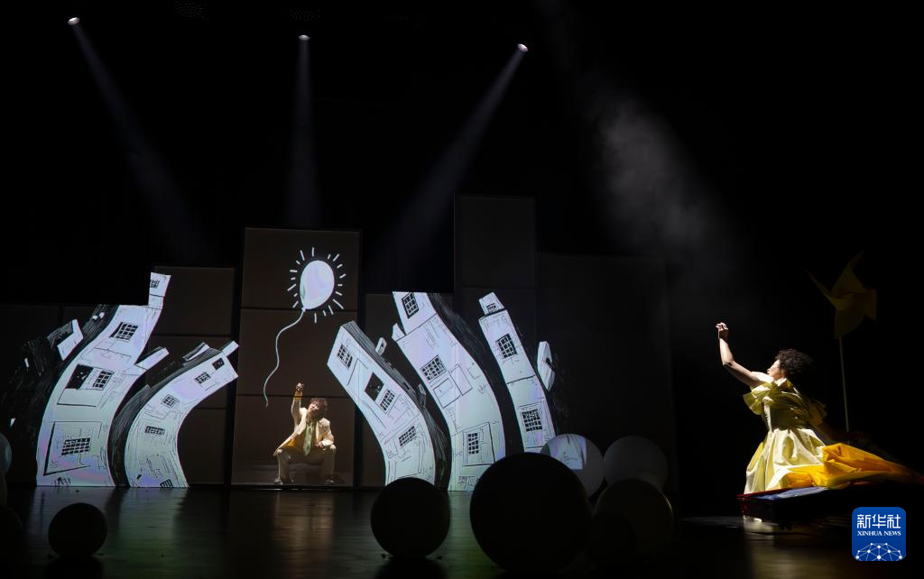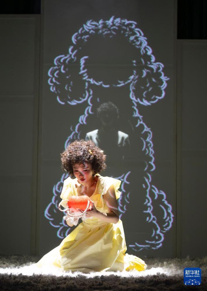 12月24日,演员在北京老舍剧场表演影像戏剧《1033》。