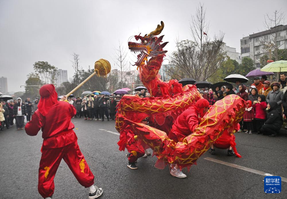2月12日,来自泸县方洞镇的龙舞队在表演泸州雨坛彩龙。泸州雨坛彩龙是四川泸县的传统龙舞,2006年被列入第一批国家级非物质文化遗产代表性项目名录。