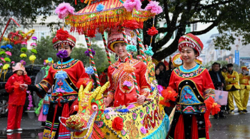 2月12日,在张家界市永定区,演员在表演民俗节目。