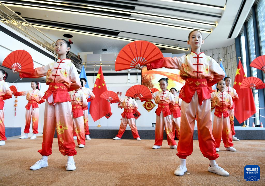 2月12日,在瑞士日内瓦万国宫,孩子们在迎新春庆祝活动上表演。