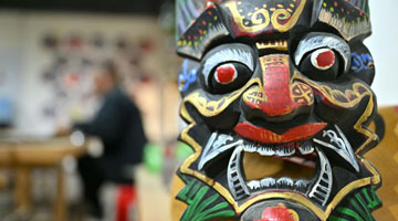 4月16日,在重庆市沙坪坝区文化馆,演员表演话剧《青山见》。