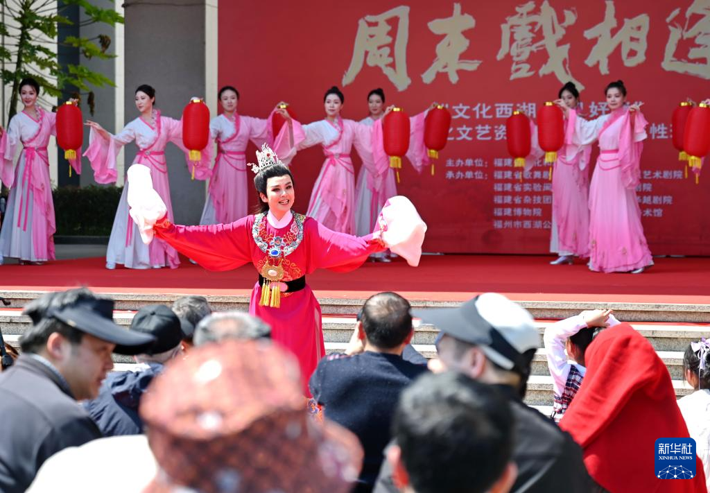 3月22日,福建芳华越剧院演员在福州西湖公园表演越剧《红楼梦》。
