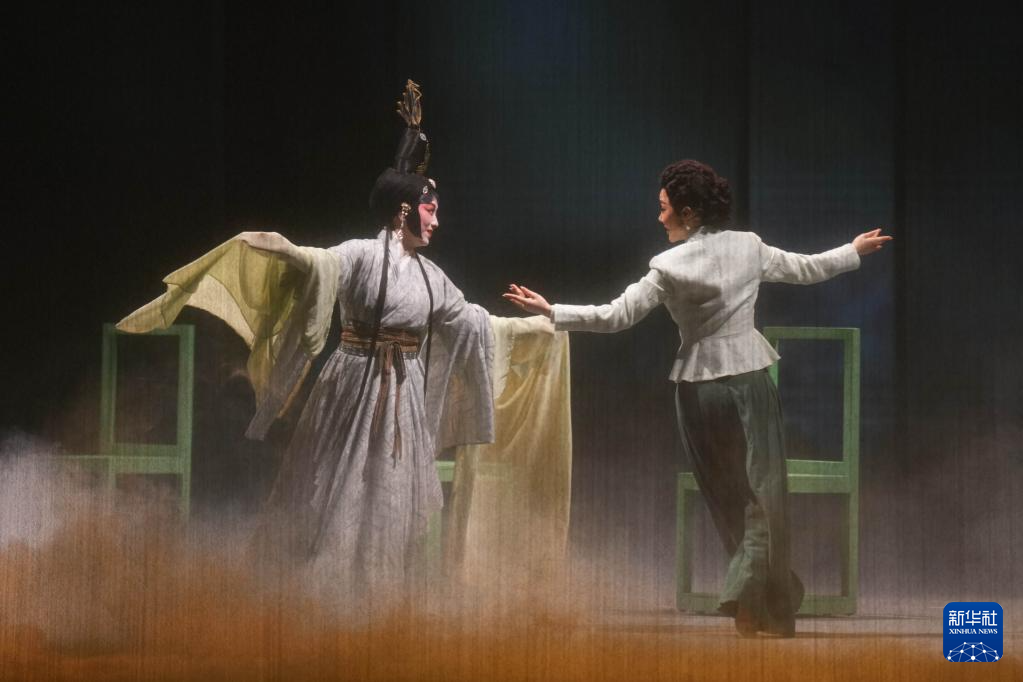 4月22日、23日晚,国家艺术基金2025年度大型舞台剧和作品创作资助项目——京剧《皿方罍》在湖南大剧院上演。新编京剧《皿方罍》由湖南省京剧保护传承中心创排,以国宝皿方罍百岁流转的真实史料为依据,讲述了1992年至2014年间,流失海外的皿方罍器身三度现世,终在多方努力下身盖合一、完罍归湘的故事。该剧还运用纱幕投影技术,打破传统京剧的舞台限制,营造出裸眼3D效果,使国宝故事更具感染力。