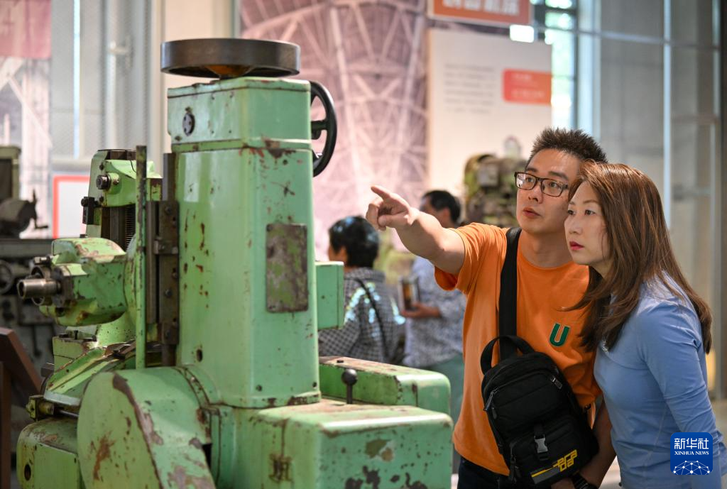 5月18日,游客在天津机床工业博物馆内参观机床设备。