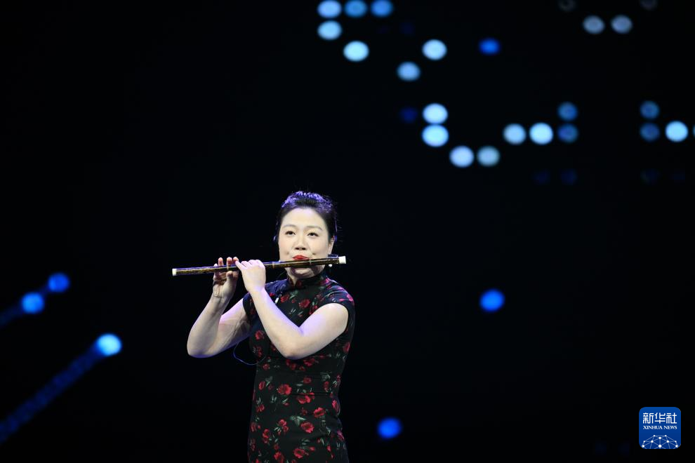 5月28日,在天津市民族文化宫,演员表演竹笛独奏《新康定情歌》。