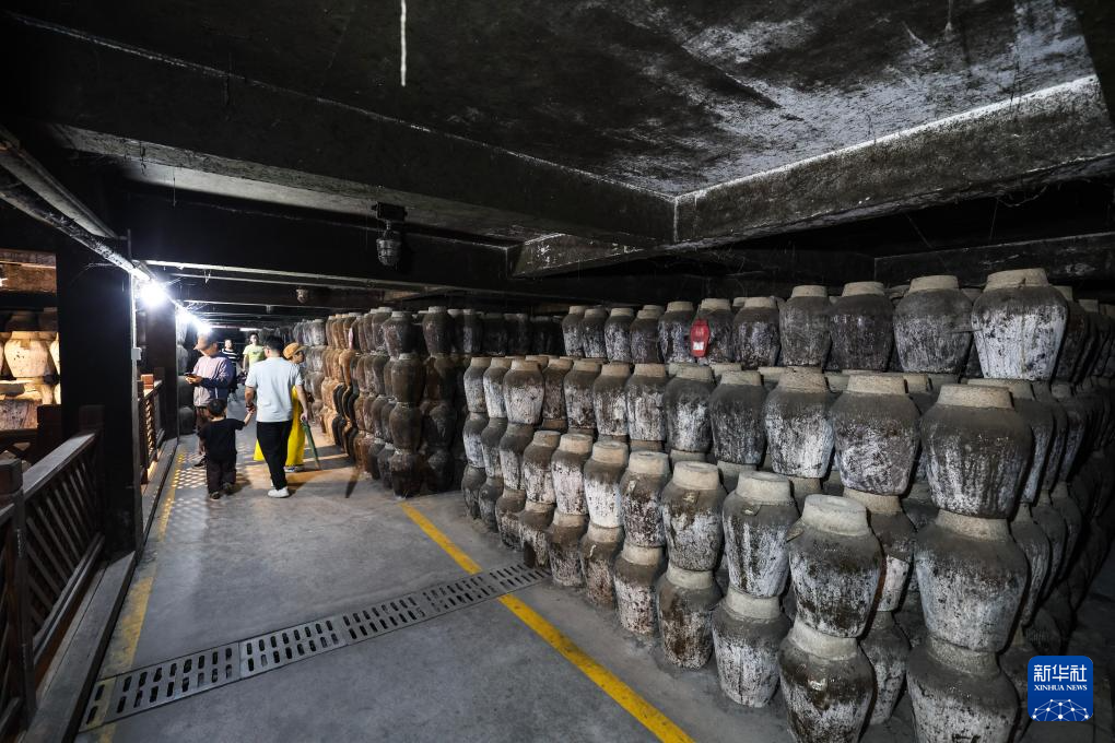 9月20日,游客在游览沈荡镇的中华老字号企业海盐沈荡酿造有限公司。中华老字号企业海盐沈荡酿造有限公司位于浙江省嘉兴市海盐县沈荡古镇,其前身为始创于清光绪年间的泰兴酱园,至今已有100多年历史。近年来,沈荡酿造在坚守传统、古法自然酿造的基础上,结合沈荡古镇旅游开发,配合打造“千年古镇、百年老厂”文旅综合项目,让更多人体验非遗和传统文化的魅力。