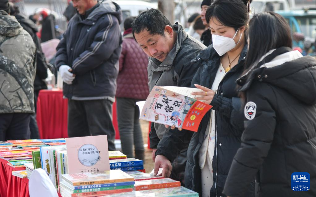 1月30日,山东省泰安市高新区北集坡街道组织的“品书香 赏非遗 逛大集”活动热闹开集,丰富多彩的文艺节目和便民服务项目吸引周边村镇居民前来逛大集办年货。