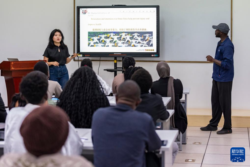 3月18日,在肯尼亚内罗毕大学孔子学院,中方院长王尚雪为当地学生讲授太极拳相关知识。