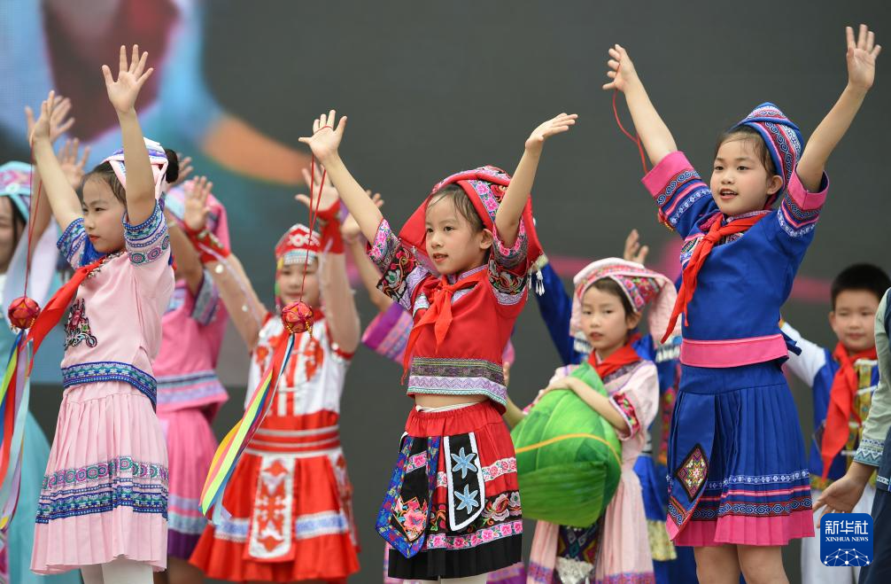 4月13日,广西南宁市滨湖路小学教育集团滨湖校区,学校师生在表演节目。