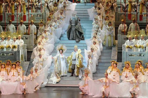歌劇《圖蘭朵》是意大利作曲家賈科莫·普契尼根據(jù)童話劇改編的三幕歌劇,是普契尼最偉大的作品之一。故事講述了一個西方人想象中的中國傳奇故事,帶有濃郁的中國韻味。《圖蘭朵》中運用了中國民歌元素,如吸收了江南民歌“茉莉花”主題,加之童聲合唱的演繹,干凈悠揚,極具東方色彩。