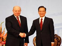 Premier Wen and visiting Russian PM pledged to further promote bilateral oil, gas and nuclear energy cooperation Thursday.