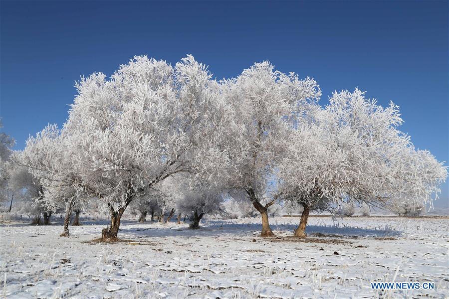 Photo taken on Dec. 14, 2017 shows the rime scenery in Altay, northwest China's Xinjiang Uygur Autonomous Region. (Xinhua)