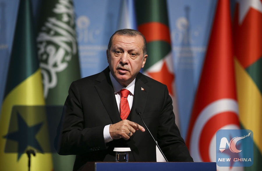 Turkish President Recep Tayyip Erdogan delivers a speech at a press conference after the extraordinary summit of the Organization of Islamic Cooperation(OIC) in Istanbul, Turkey, on Dec. 13, 2017. (Xinhua/Anadolu Agency)