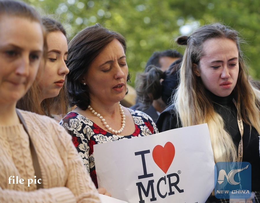 People attend a candlelit vigil to mourn the victims of Manchester terror attack at Albert Square in Manchester, Britain on May 23, 2017. On Monday night, a suicide terror attack took place at Manchester Arena at the end of a pop concert, killing at least 22 people, several of whom were children, while injuring 59 others. (Xinhua/Han Yan)
