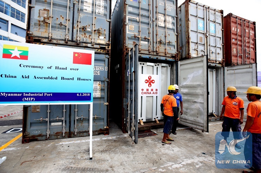 YANGON, Jan. 6 (Xinhua) -- China on Saturday handed over to Myanmar authorities about 100 prefabricated houses for displaced persons in Myanmar's western Rakhine state at the Myanmar Industrial Port.