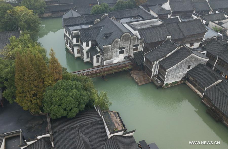 Aerial photo shows a view of the Xizha scenic area in Wuzhen, a historical water town in Tongxiang City, east China's Zhejiang Province, Nov. 22, 2017. (Xinhua/Weng Xinyang)