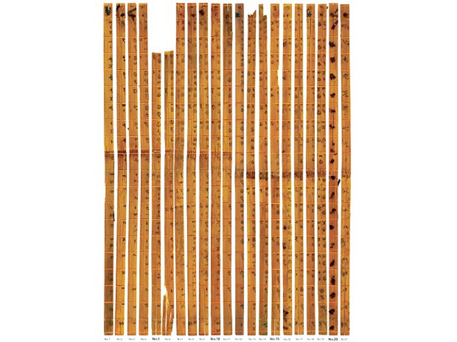 The 21 bamboo strips collected by Tsinghua University as the earliest decimal computation system, namely. (Photo by Guinness World Records)
