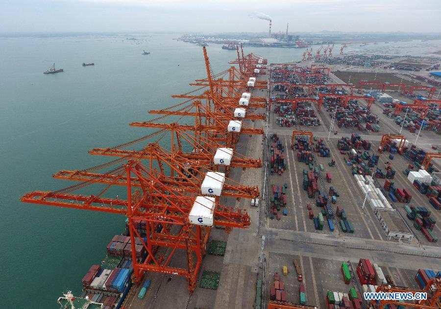 Photo taken on Jan.10, 2018 shows Qinzhou port in south China's Guangxi Zhuang Autonomous Region. By making full use of its geographical location and the potential of coastlines and border areas, Guangxi capitalized on its advantages and played a bigger role in the Belt and Road Initiative. Through ports and the Beibu Gulf Economic Zone, the trade cooperation between Guangxi and ASEAN countries gained great prospects. (Xinhua/Lu Boan)