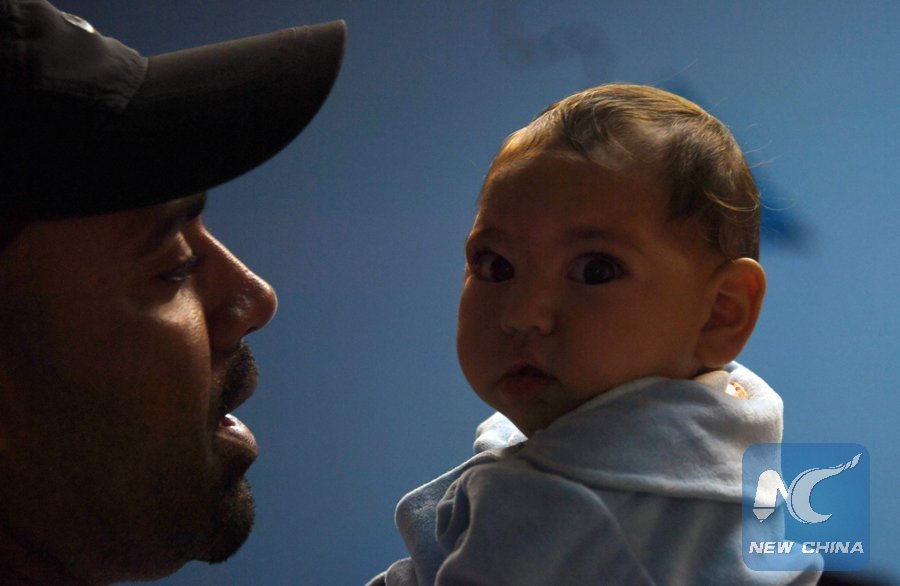 Paulo Sergio (37) holds his six-month-old baby Arthur Meneses as they wait for medical exams at the State Brain Institute (IEC) in Rio de Janeiro, Brazil on January 2, 2017. Arthur's mother was infected with the zika virus, transmitted by the Aedes aegypti mosquito, while pregnant and her son was born with microcephaly, during a 2015-2016 wave of babies born with that condition, which involves a smaller-than-normal head size. (Xinhua/AFP PHOTO)