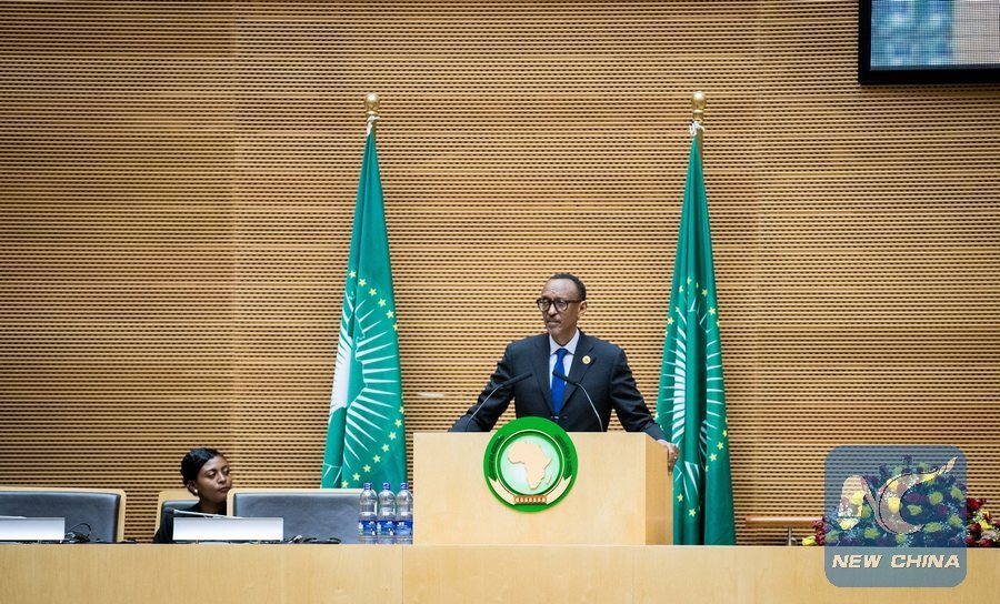 Rwandan President Paul Kagame, Chairperson of the African Union, speaks during the 30th heads of state and government summit of the African Union (AU) at the AU headquarters in Addis Ababa, capital of Ethiopia, Jan. 28, 2018. (Xinhua/Lyu Shuai)