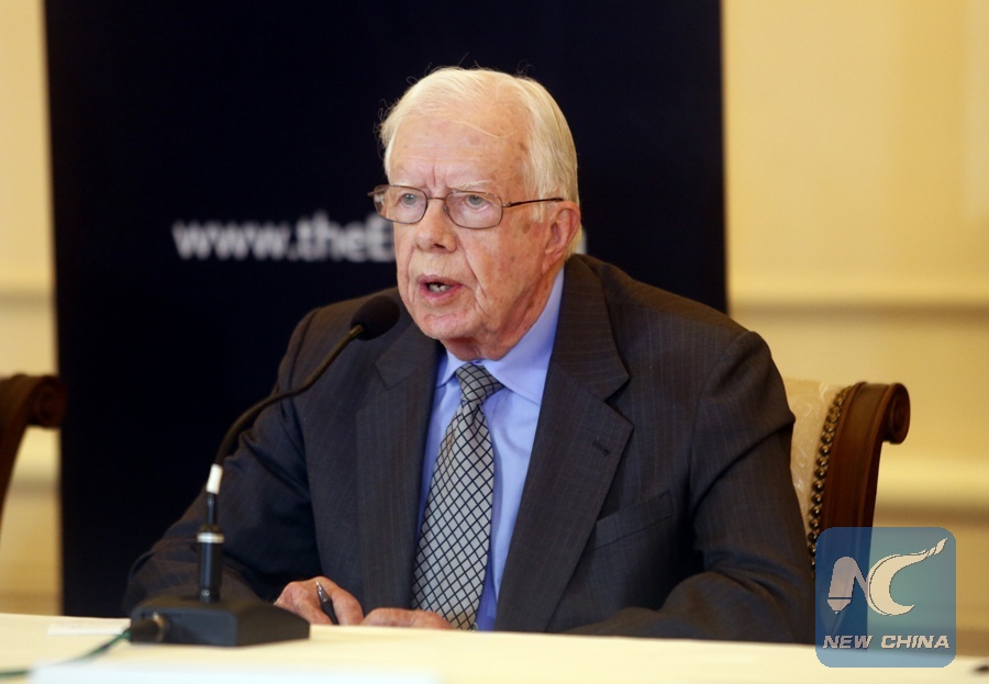 Former President of the United States Jimmy Carter speaks at the Elders Group press conference in Yangon, Myanmar, Sept. 26, 2013. (Xinhua/U Aung)