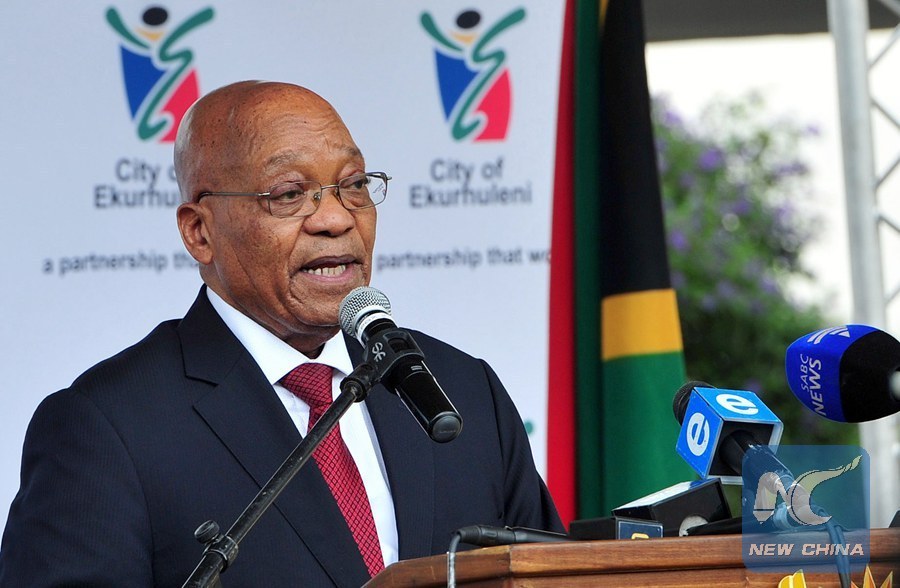 South African President Jacob Zuma speaks during the Chris Hani Wreath Laying Ceremony and handover of the Chris Hani heritage site in Boksburg, Gauteng Province, South Africa, on April 10, 2017. (Xinhua)