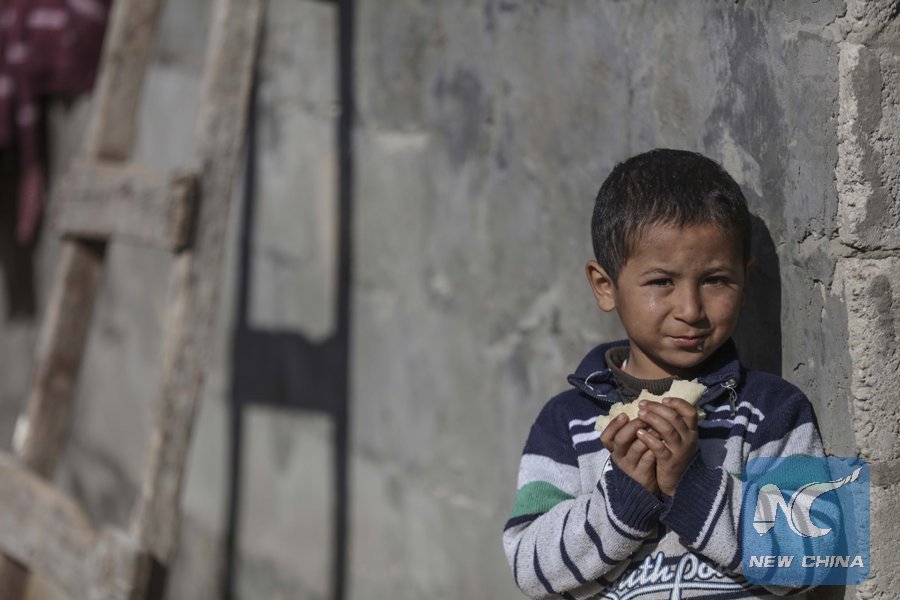 A Palestinian refugee child is seen at al-Shati refugee camp in Gaza City, on Jan. 17, 2018. (Xinhua/Wissam Nassar)