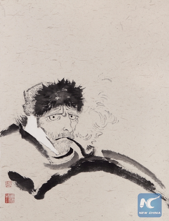 Photo shows Van Gogh-Bodhidharma by Zhang Hongtu. (Xinhua)