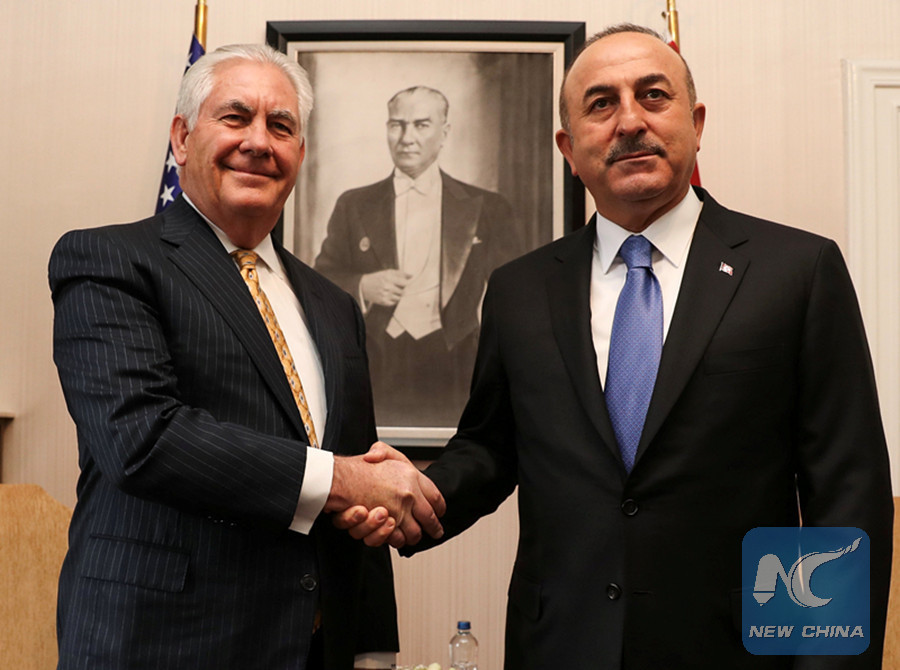 For his part, Tillerson said the U.S. and Turkey will work together in Syria, where Turkey is conducting a cross-border military operation to fight the Kurdish militia.