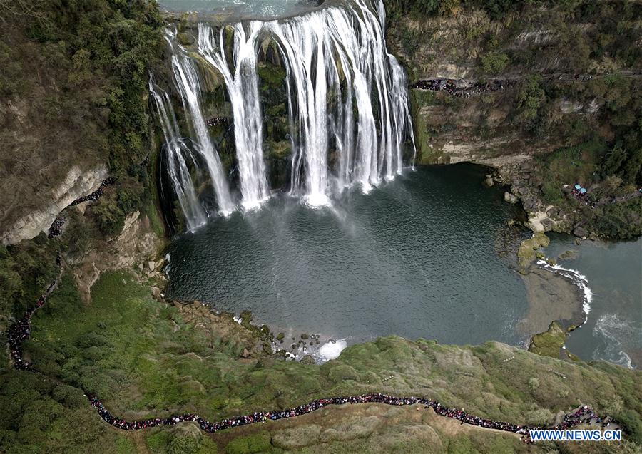 Tourists view Nanshan tourism zone in Sanya, south China's Hainan Province, Feb. 18, 2018. China posted a double-digit growth in tourism revenue during the week-long Lunar New Year holiday, official data showed Wednesday. The tourism industry garnered 475 billion yuan (about 75 billion U.S. dollars) in revenue, up 12.6 percent from last year's holiday, according to the China National Tourism Administration (CNTA). Some 386 million trips by tourists were made, up 12.1 percent from last year's holiday, the CNTA said in a statement. (Xinhua/Chen Wenwu)