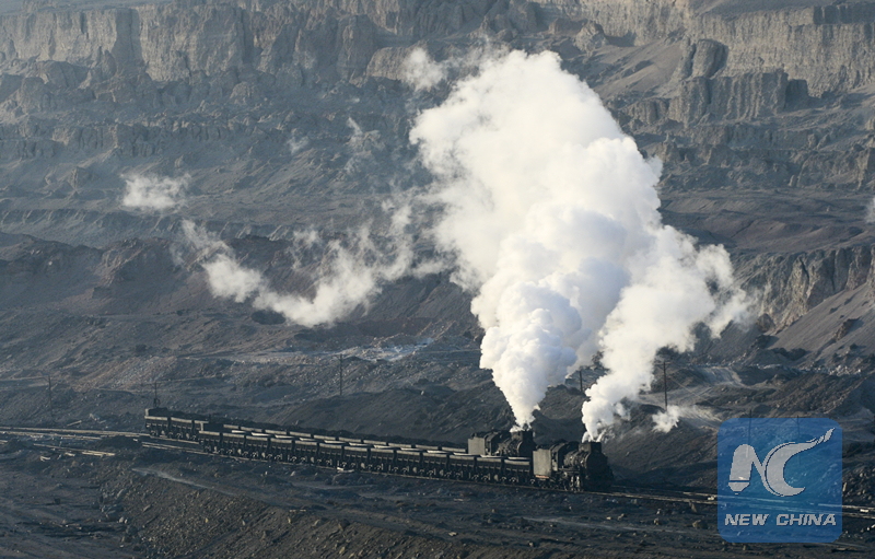 A steam train in Sandaoling. (Xinhua/Zhao Ge)